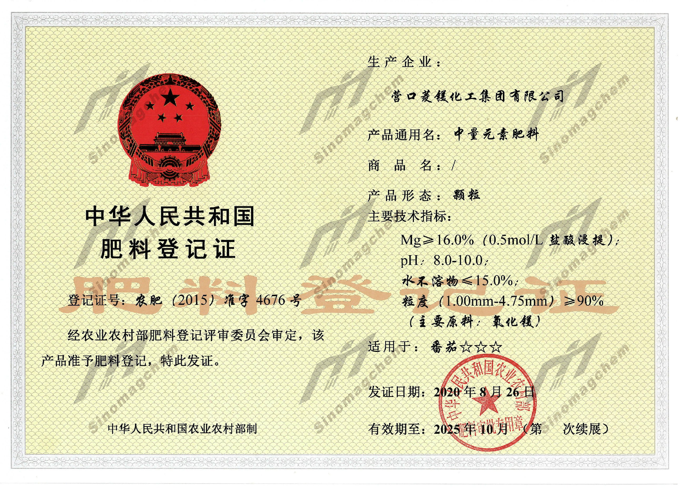 肥料登記證(粉劑)