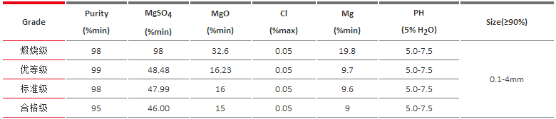 ● 工業(yè)級產(chǎn)品 七水硫酸鎂是非常重要的無機化工原料,用途廣泛,除了用于醫(yī)藥、食品、輕工業(yè)、化學工業(yè)、制革工業(yè)、印染工業(yè),還可用作水泥助凝劑、阻燃劑、炸藥、火柴、瓷器、玻璃、顏料、ABS樹脂的制造,同時在造紙工業(yè)、水處理、工業(yè)領域也有廣泛應用。